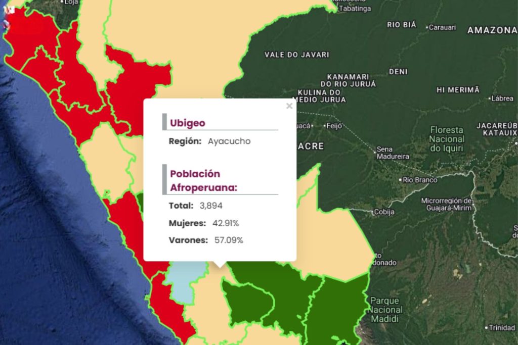 Historia: En la colonia existió esclavitud doméstica y presencia negra en haciendas, aunque en menor escala. Expresiones culturales:– Danza “negritos de Huamanga” en fiestas navideñas, vinculada simbólicamente al afrodescendiente, aunque interpretada por no afrodescendientes.– Migración reciente de población afro a zonas urbanas como Huamanga. Facebook X LinkedIn Email